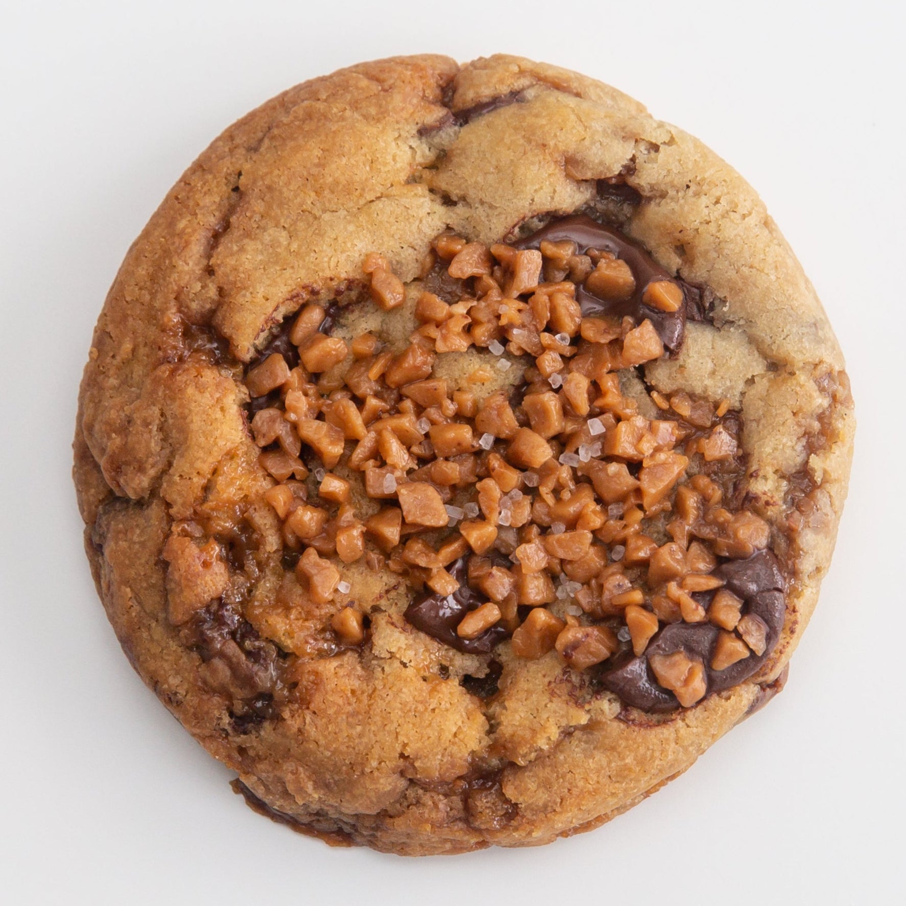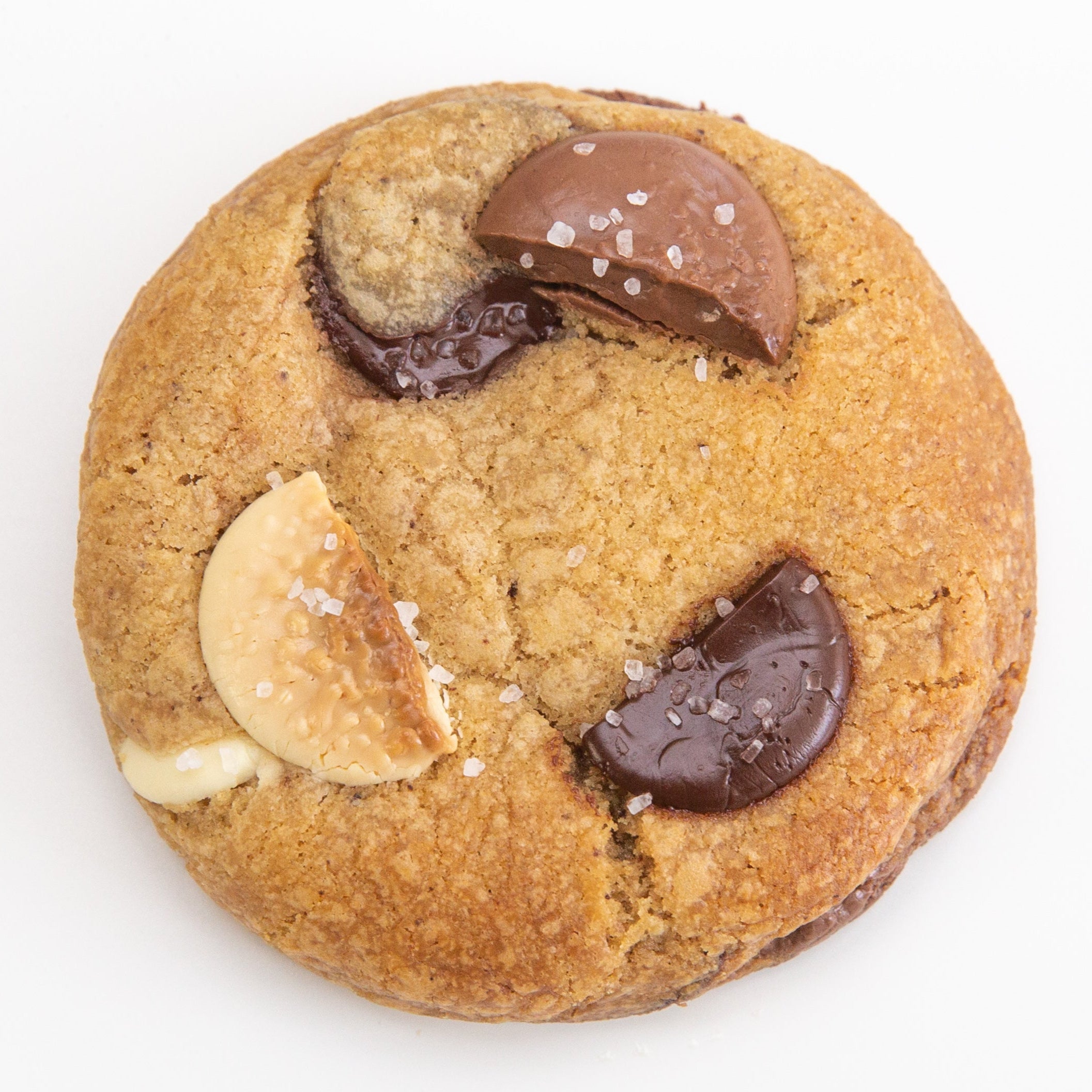 Rich brown butter dough loaded with white, milk and semisweet chocolate, finished with a touch of sea salt!