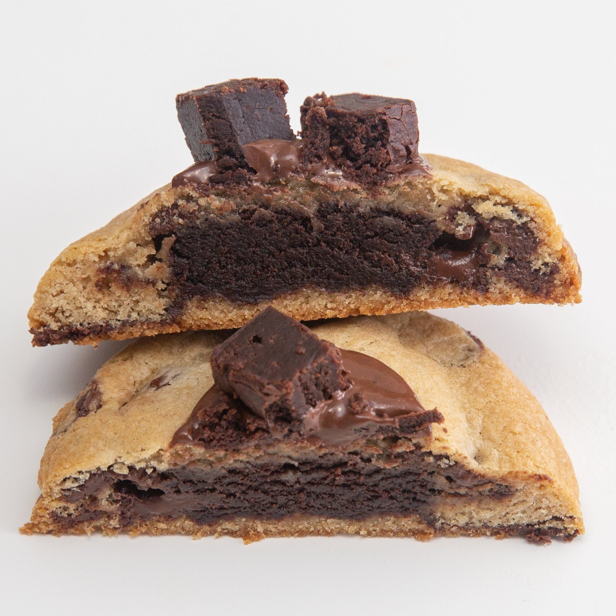 A decadent chocolate chunk cookie filled with Chocosis’ signature fudgy brownie, then topped with extra brownie chunks for the ultimate double indulgence.