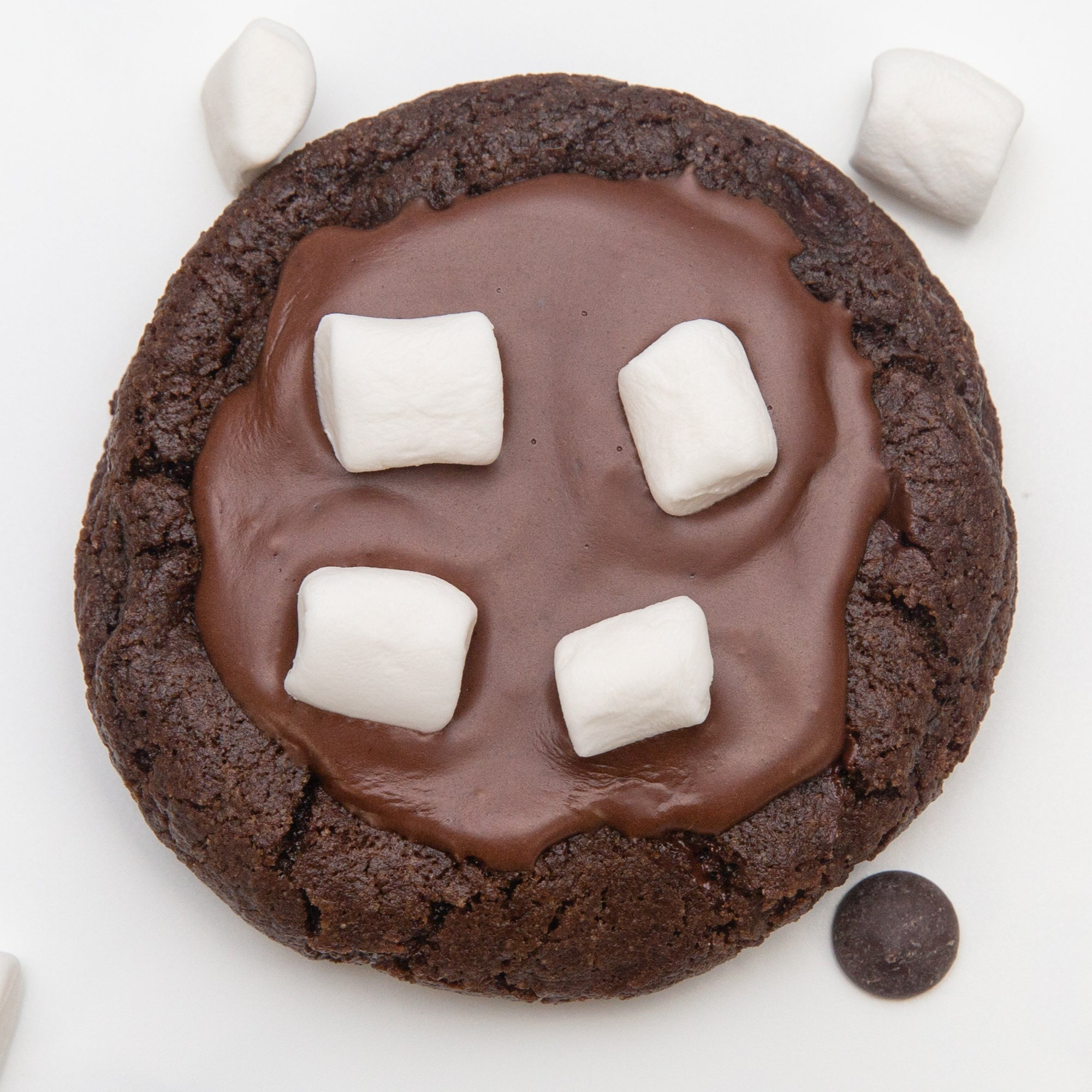 A rich cocoa cookie with 55% Belgian chocolate, topped with a rich chocolate glaze and fluffy marshmallows. *Seasonal*