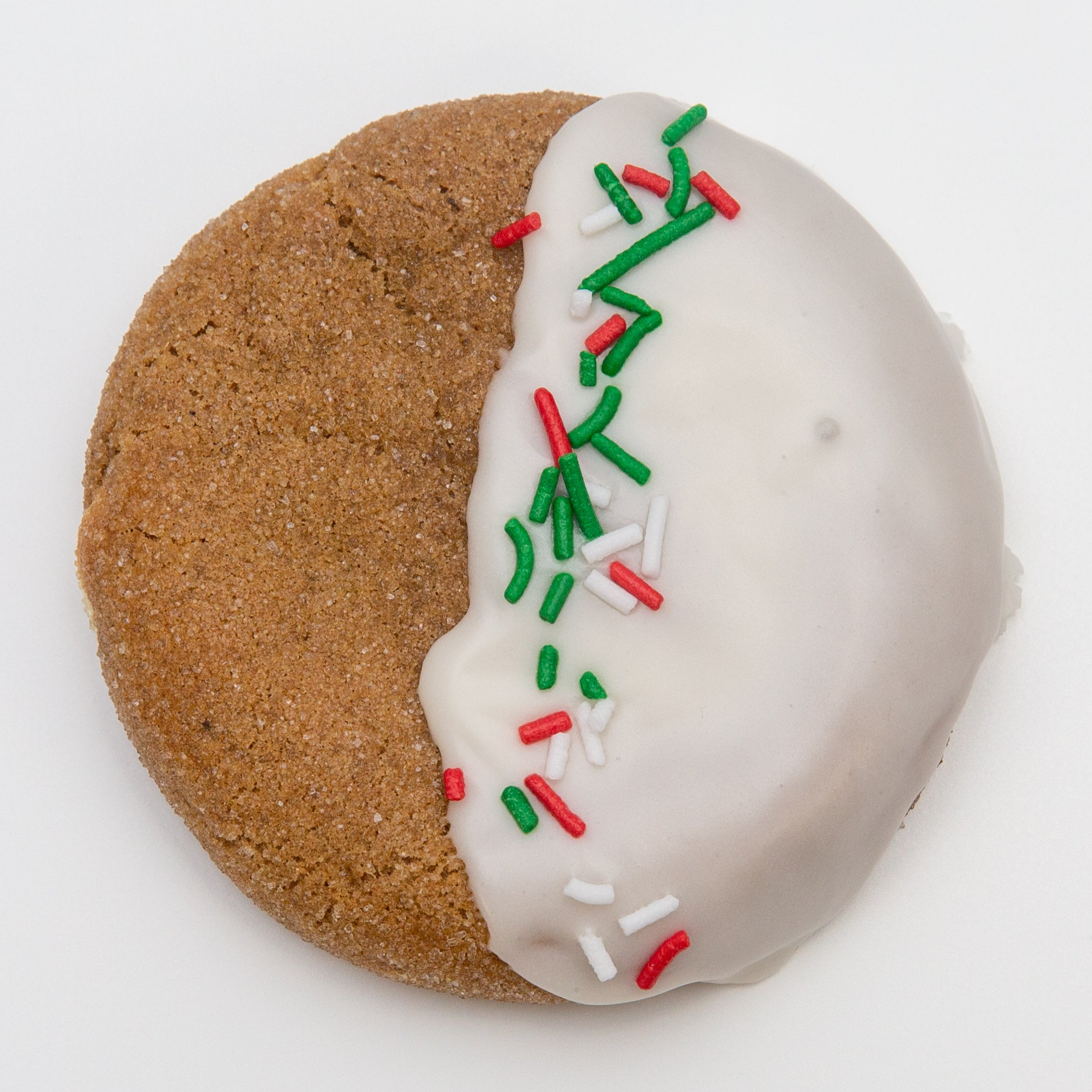 A spiced cookie with ginger, cinnamon, cloves, nutmeg and molasses, white chocolate and topped with a sweet maple glaze. *Seasonal*