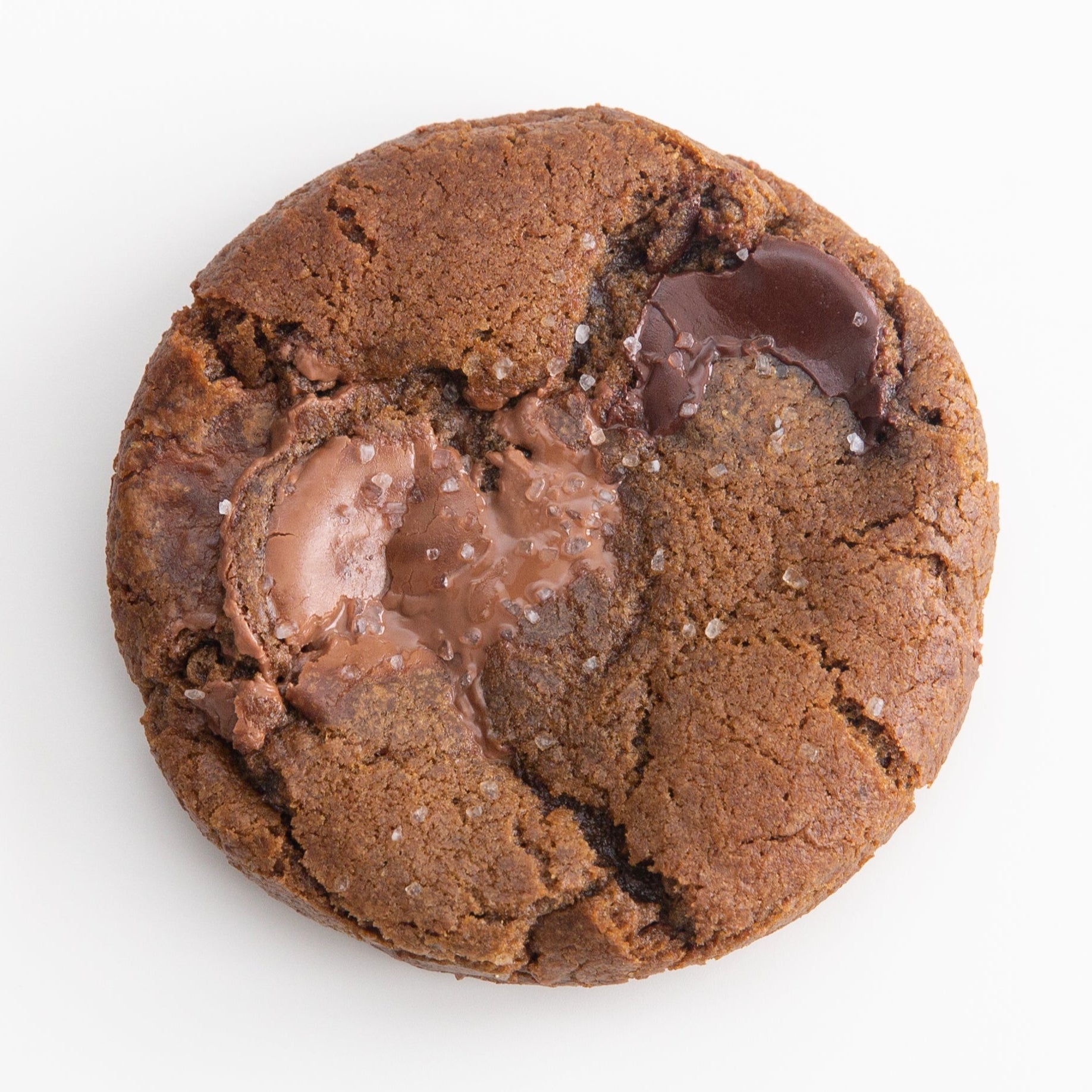 Deep, rich, and intensely chocolatey! Made with 55% Belgian chocolate, this cookie is packed with chocolate chunks for a perfectly soft and fudgy bite.