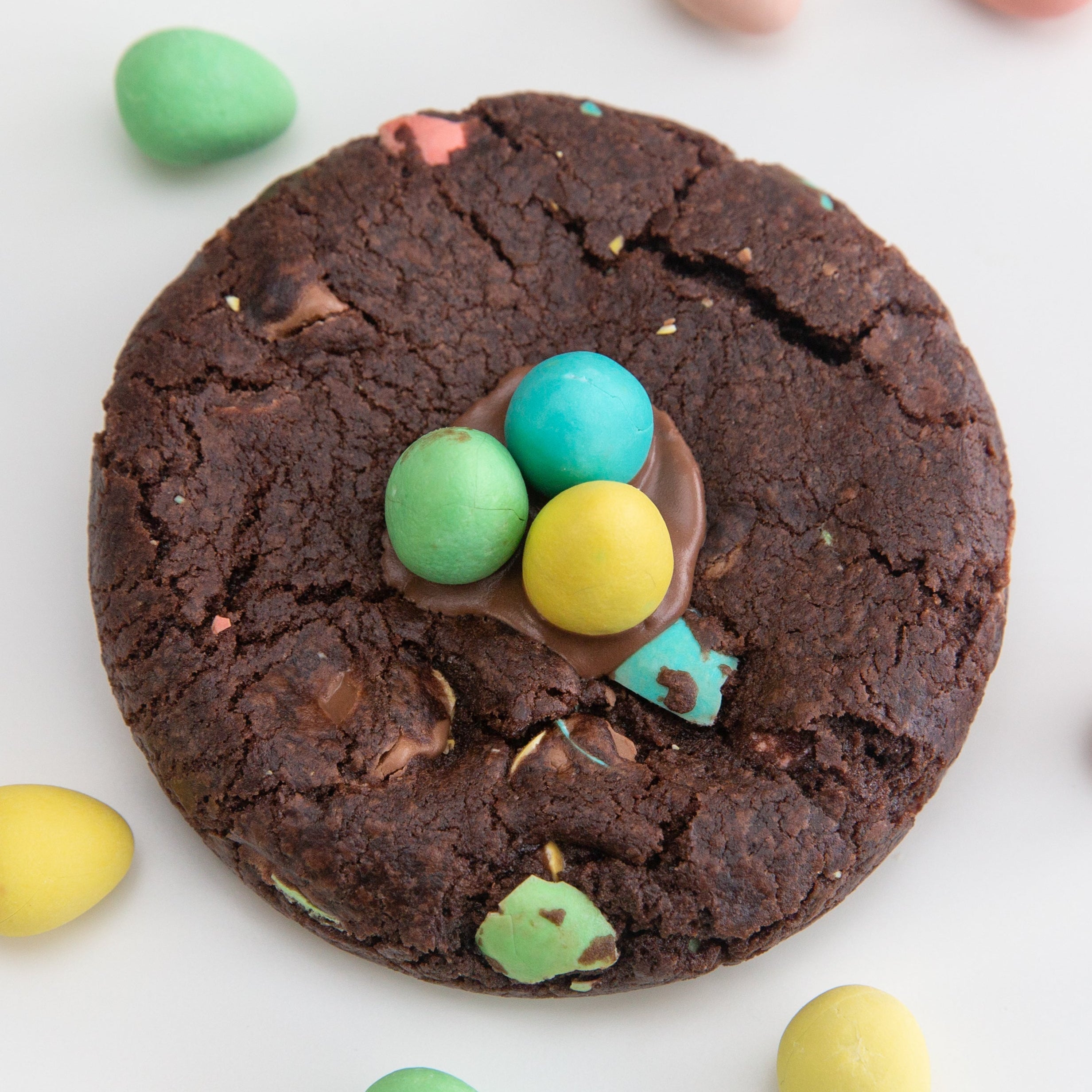 Dark cocoa dough packed with crunchy mini eggs and milk chocolate, filled with rich chocolate ganache.