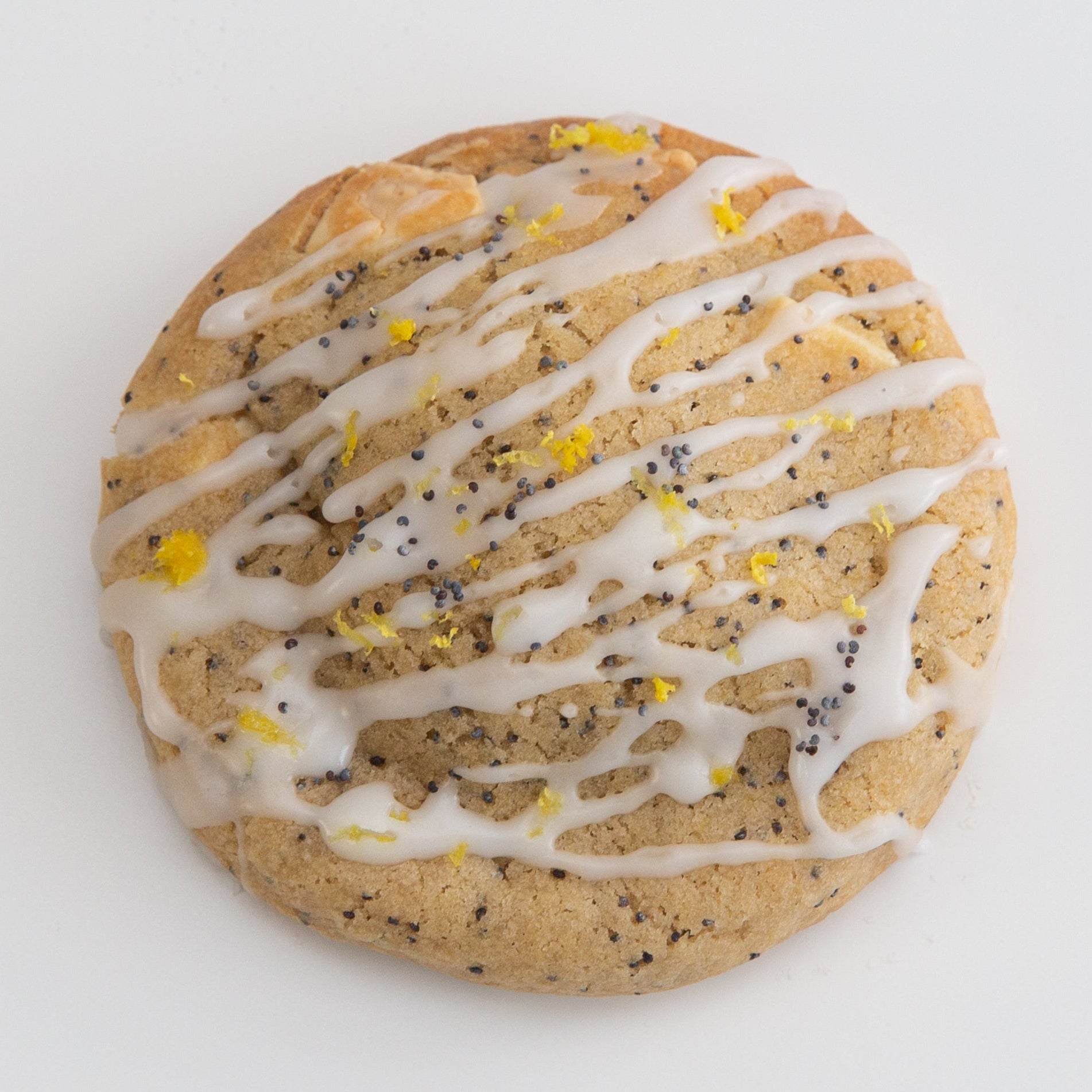 Fresh lemon dough, lemon zest, poppy seeds and white chocolate, drizzled with a fresh lemon icing!