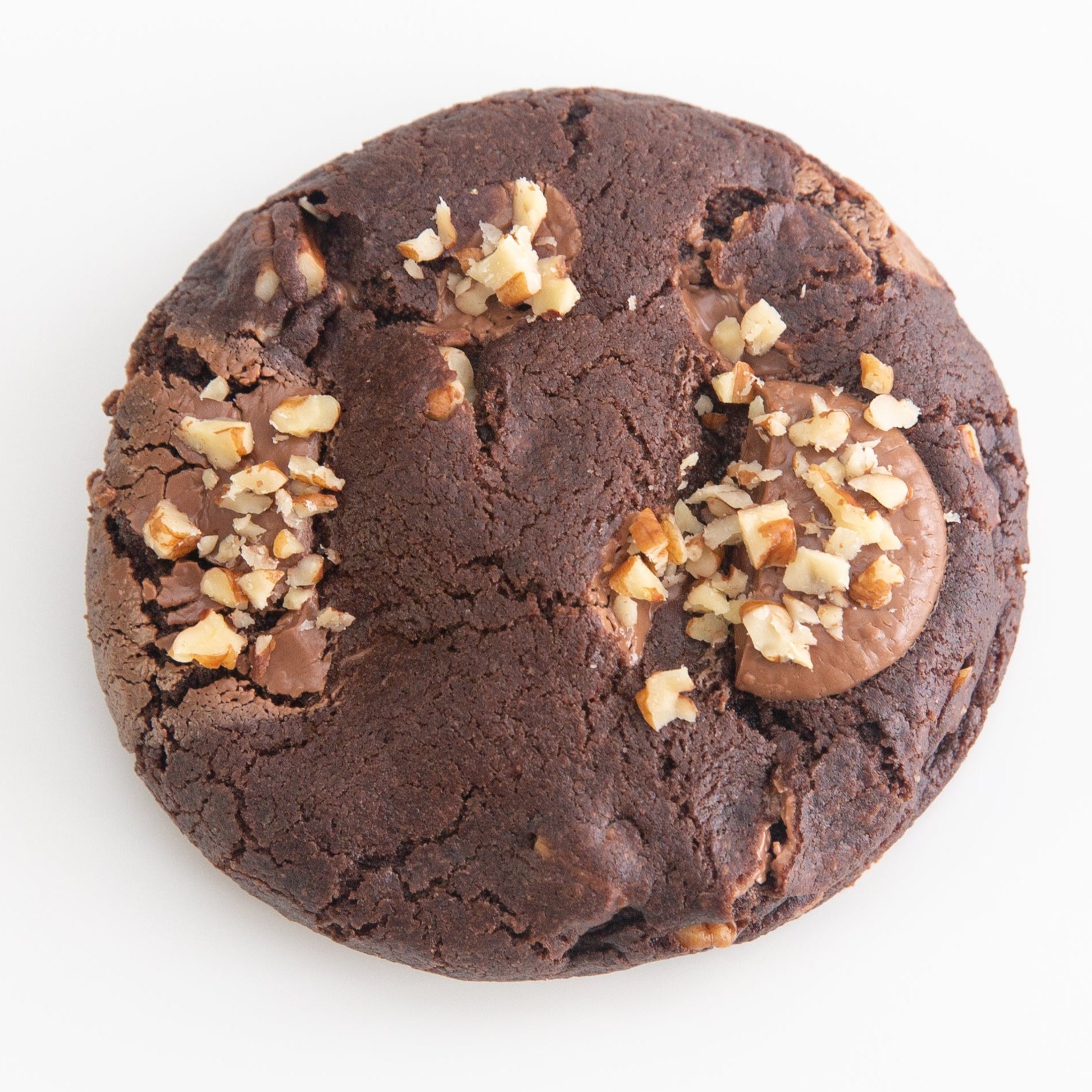 Dark cocoa dough with crunchy pecans and milk chocolate, stuffed with rich, house-made caramel!