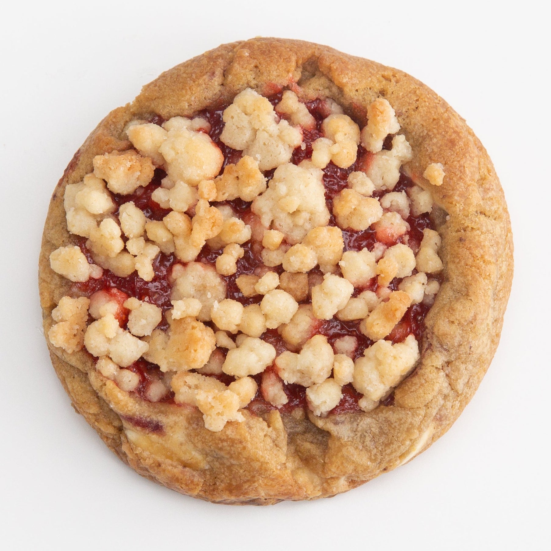 A dreamy twist on a classic dessert! This cookie features a soft, buttery dough infused with white chocolate and tangy freeze-dried strawberries, filled with house-made strawberry jam and finished with buttery shortbread crumble on top, it’s a sweet, nostalgic bite of summer in every mouthful.