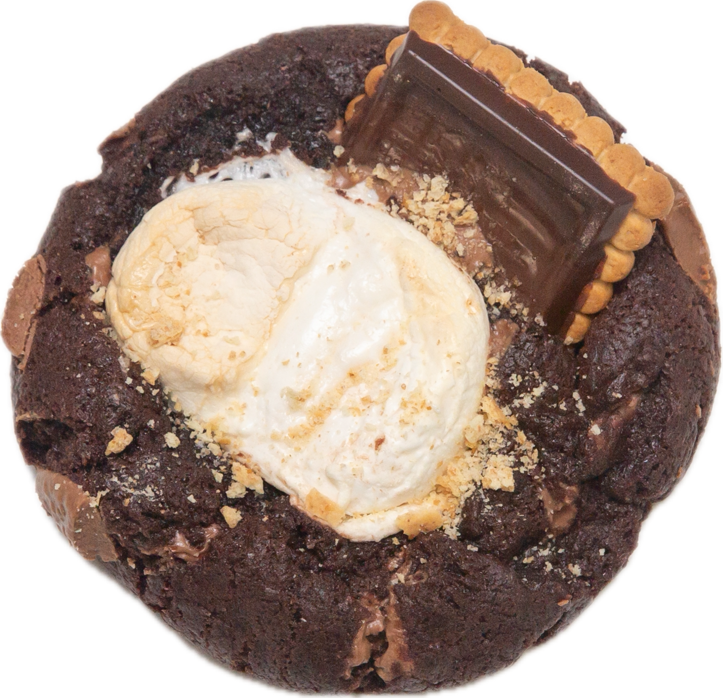 Buttery graham cracker base, rich cocoa dough with milk chocolate, a gooey marshmallow center and a crunchy graham crumb + celebration cookie topping. Cozy and nostalgic in every bite.