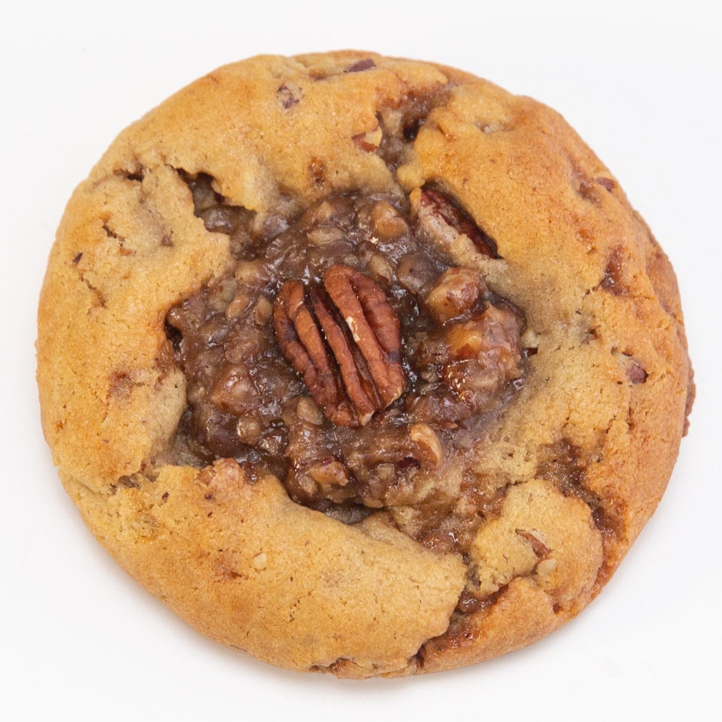A chewy cookie loaded with pecans and toffee bits, filled with gooey pecan pie filling for a delicious twist on the classic dessert.
